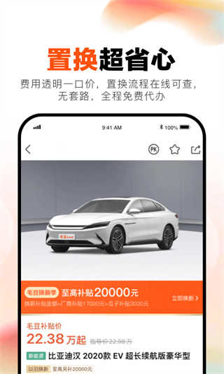 毛豆新车采用费用透明化制度,置换价格一口定,线上即可查看流程进度,避免额外费用与繁琐环节。