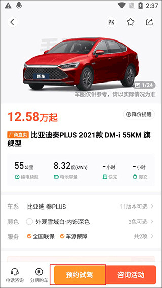 1、我们先在app选中我们心仪的汽车,点击预约试驾。