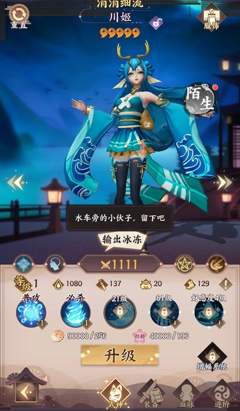 4、玩家想要快速结束战斗就需要将获得的式神进行升级养成、穿戴装备等,提高式神战斗力。