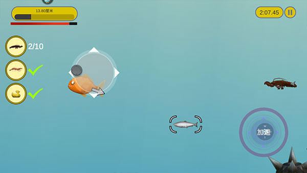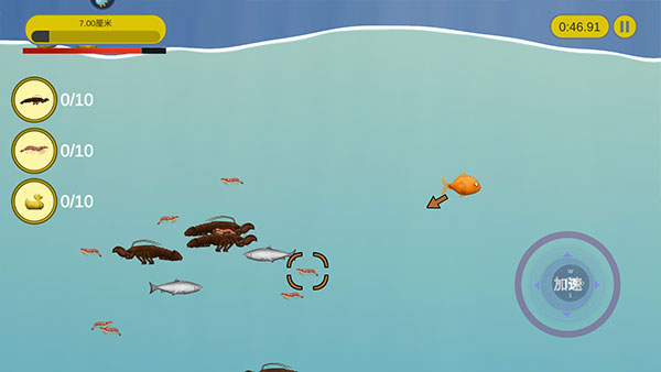 玩家需要在海洋中寻找食物,同时避开比自己大的捕食者。