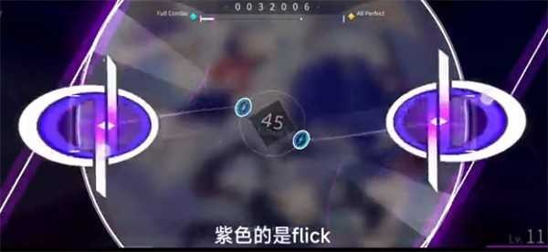 6、FLICK:当flick音符与判定线重叠时,用手指快速划过flick音符。