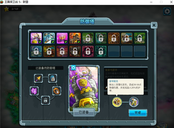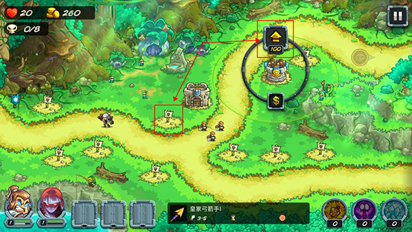 这代的初始弓箭塔数值和技能也很不错,可惜由于这代法塔本身也很强势所以闪光点不多,个人认为表现最突出的情况是在第三张地图针对带甲飞行单位和补充物伤。