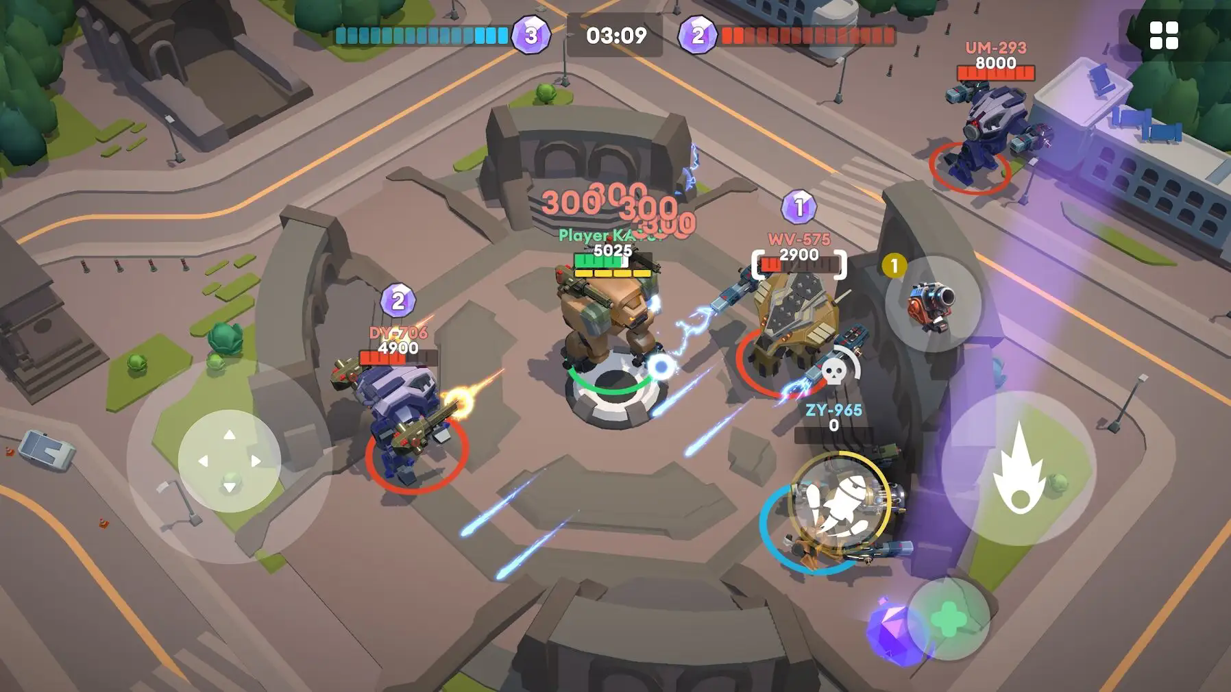 利用机甲的技能和武器,攻击敌人并躲避对方的攻击。合理安排战术,与队友配合,实现团队的胜利。