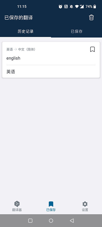 6、还支持用户查看翻译的历史记录并进行删除和保存操作。
