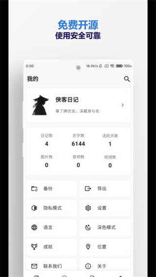 1、侠客日记是一款完全开源的跨平台日记软件,具备极高的自由度。