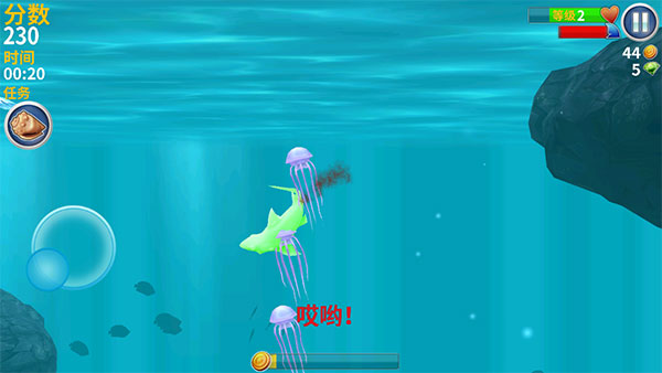 3、碰到水母尽量躲避哦,它会让你直接死亡的。
