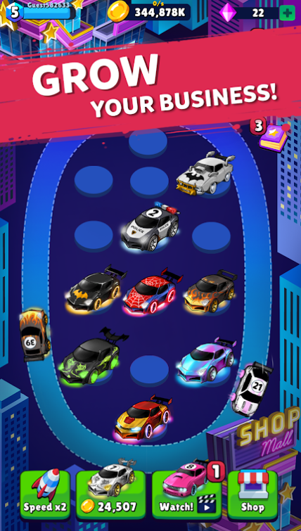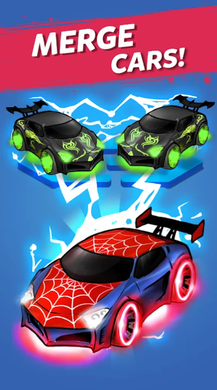 通过两个赛车合并解锁更高级别的跑车,提升你的车队实力。
