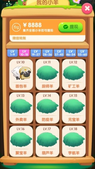 3、将小羊提升到10级,即可解锁更高等级的小羊。在合成过程中,收益会翻倍,让你体验到更快的收益效率。