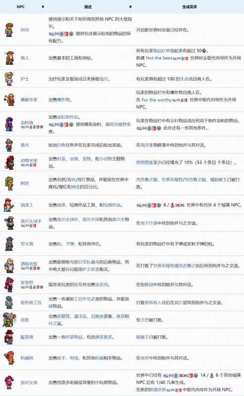 泰拉瑞亚NPC入住条件大全分享
