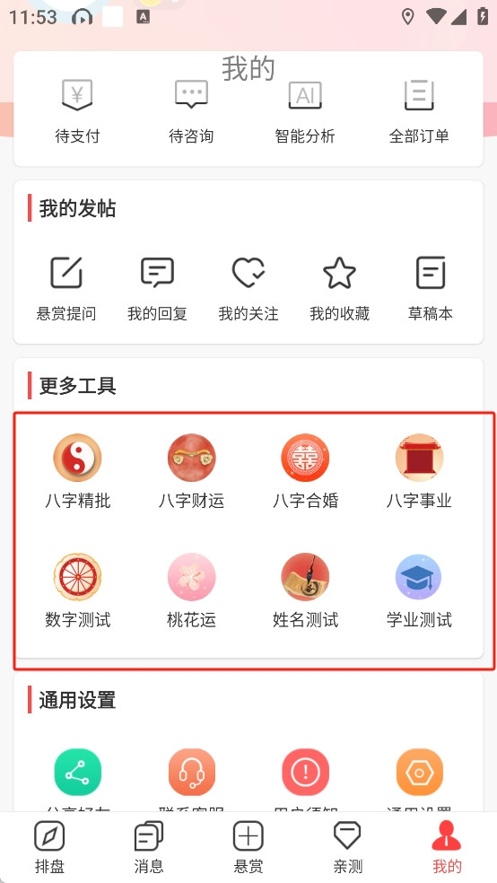 集成悬赏断论、命理社区及在线大师咨询,支持用户发帖求测、多人测算及经验分享,强化命理学习与交流场景。