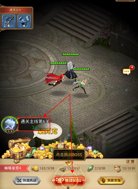 1、在这款游戏中以主线闯关为主,玩家点击就能自动挑战,通关后可以获得大量奖励。