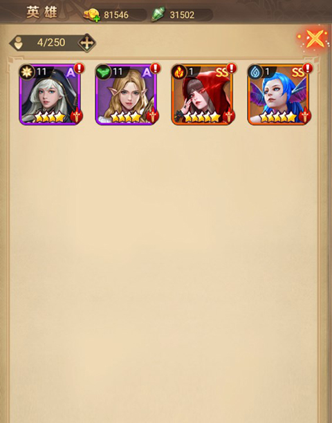 3、游戏内有着各种英雄,包括各种品质,品质越高英雄质量越好。