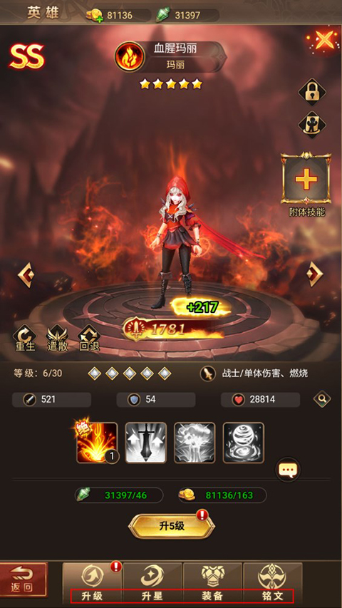 4、玩家可以对要上阵的英雄进行培养,可以升级、升星、穿戴装备等等,大幅提高战力。