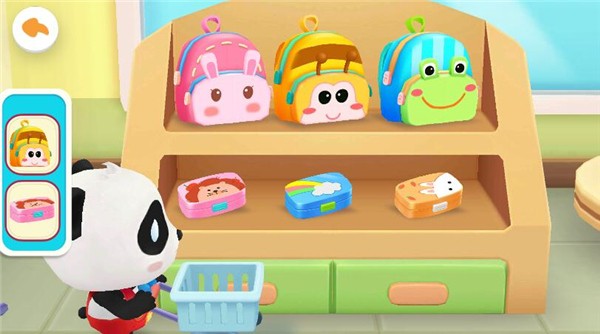 5、此外,游戏中还有一个购物车功能;点击购物车图标,你可以购买一些小书包,这些小书包可以用来存放你在游戏中收集的物品;