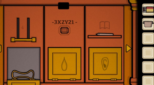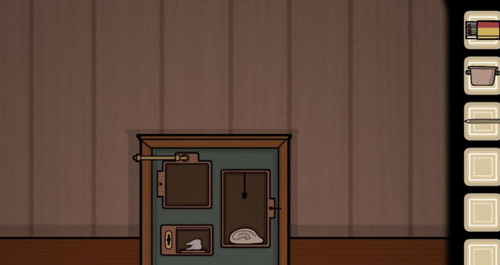 5、将机关再向左转,根据过去炉子上的提示解开机关,获得电池。