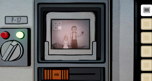 4、将视角拖动到左侧,装上开关,打开开关,根据过去右2房间上的画顺序拨动机关,获得对过去的提示。