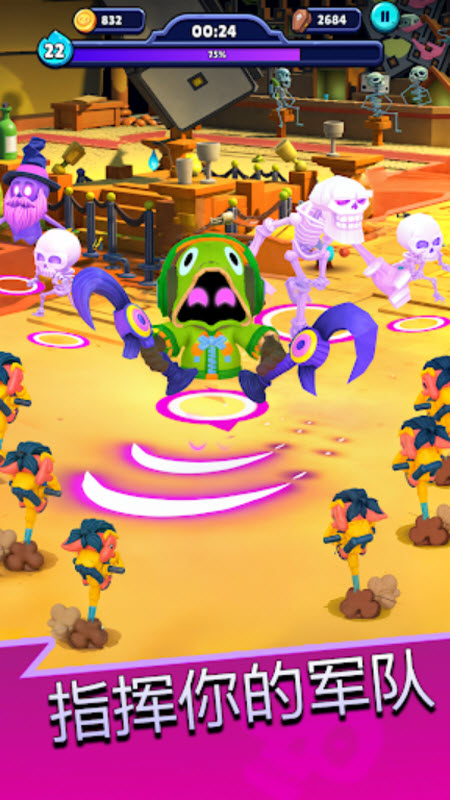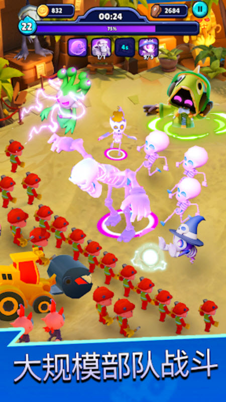 1、修筑各种建筑物,提升自己的能力和召唤物的战斗力。