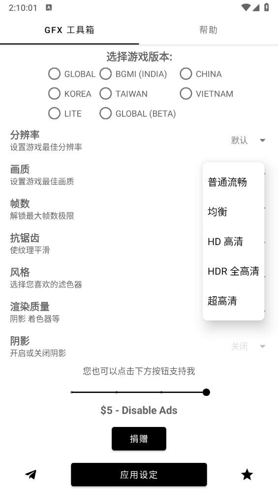 GFX工具箱(GFX Tool),专为和平精英和PUBG玩家打造的免费画质优化神器,能轻松解锁高清画质、提升游戏帧率,并支持多国版本自定义设置,让你的游戏画面更流畅、更清晰,支持支持中国、国际、韩国、越南等多个版本修改,能够在里面体验极致吃鸡乐趣。