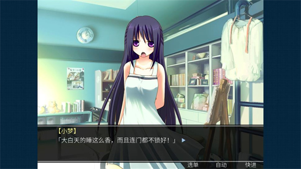 2、在剧情对话界面,可根据需求点击【快进】跳过对话,或点击【自动】让对话自动播放。