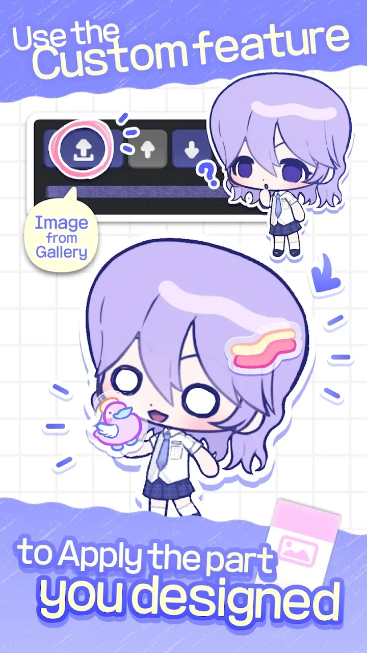 6、选择【custom】上传服装,为角色搭配精美服装。