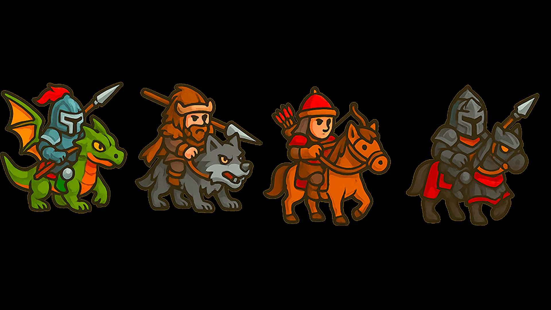 3、骑士:起步需要由慢到快的加速,到达目的地或者转弯时会刹不住车,用来冲击弓箭手是不错的选择。