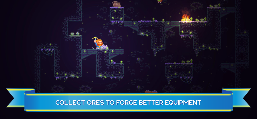 矮人之旅,Dwarf Journey,操作上特别流畅的地牢冒险闯关游戏。直接控制主角快速探索洞穴,遇到障碍物以及陷阱可以轻松跳跃通过,遇到魔物后还能使用技能发动攻击,争取将其击败,同时每次进入游戏地图都是随机生成的,这样就能体验完全不一样的冒险。