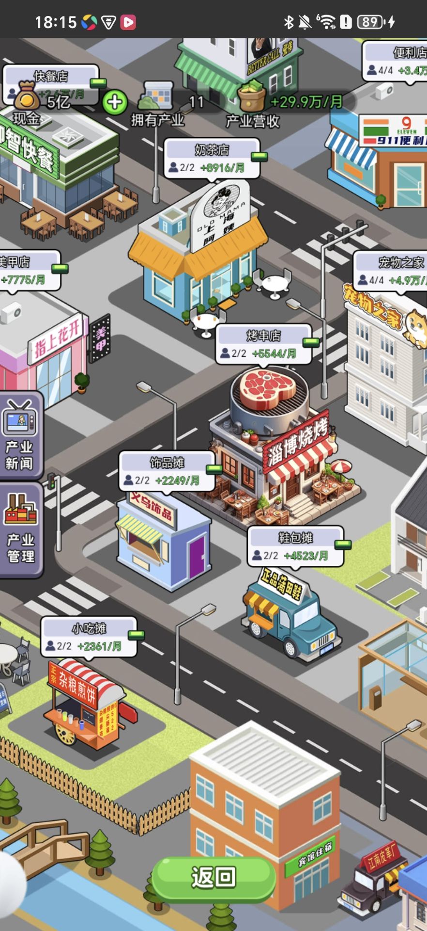 3、还可以解锁自己的产业,投资奶茶店、美甲店等,可以帮助自己来提升收益。