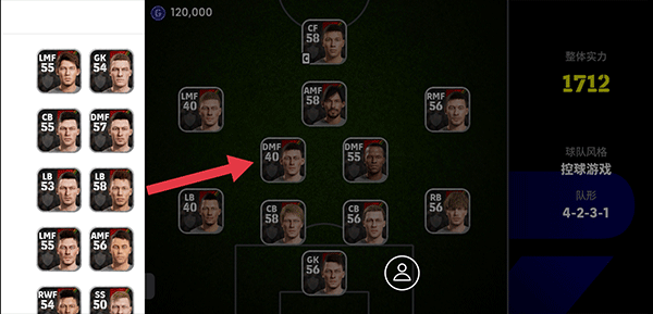 3、然后在预备球员中选择你要替换的球员,并将他拖到队伍内需要换下的球员位置中即可