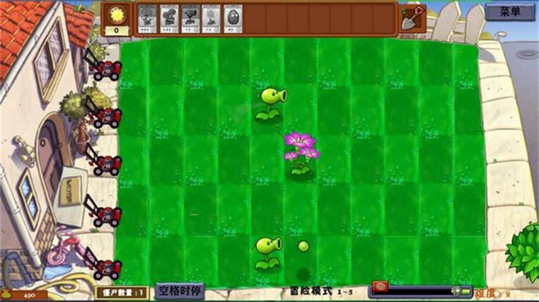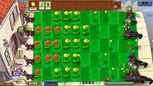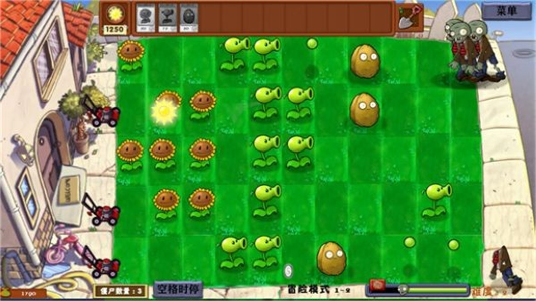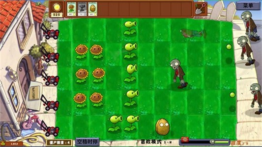 3、合理的种植植物,利用植物的能力来应对入侵的僵尸,将他们通通击败。