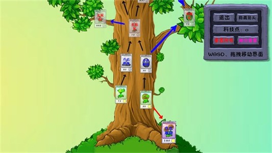 7、通关后获得科技点数,在主界面点击科技树,可以解锁新的植物和效果。