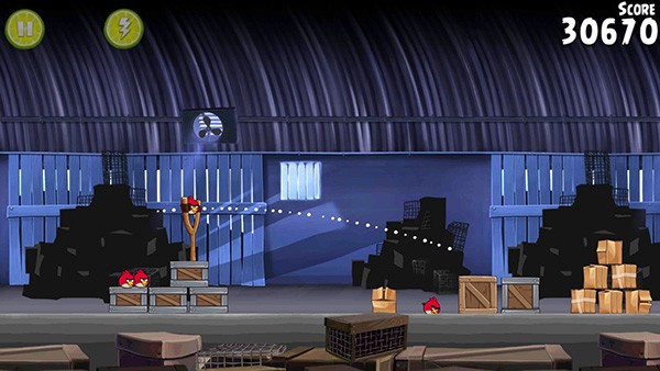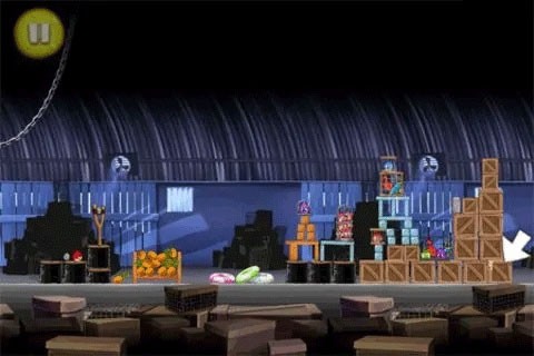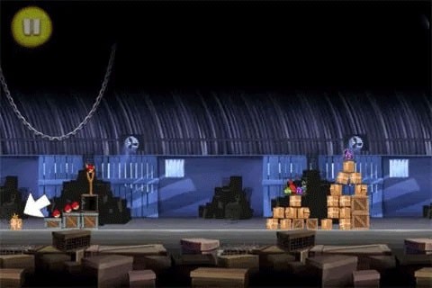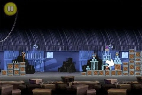 这一关也是如同前面。让小鸟散射摧毁前面的两个建筑物;然后让剩余的物件在推到最右边的建筑物
