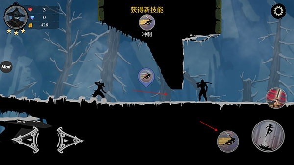3、充满的危机世界,在阴影世界里去跳跃和奔跑来闯关,畅快的来游玩。