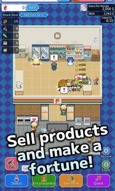2、轻松的便利店经营和放置战斗玩法,更好的怀旧像素画风的画面。